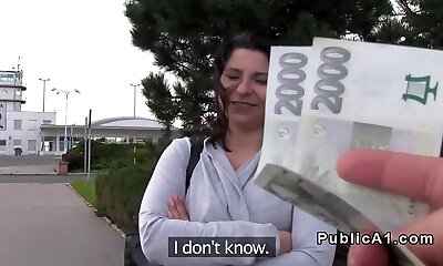 Brunet busty stranger gives a blowjob and gets fucked for cash