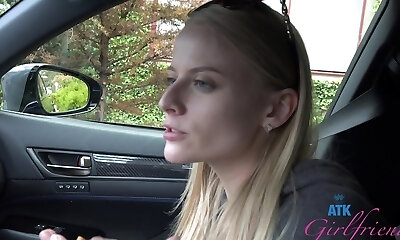 Kristyna is a cute platinum-blonde fucking on the car