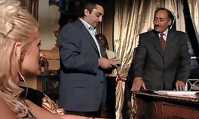 Horny men treat a gorgeous light-haired bang-out bomb to a foursome