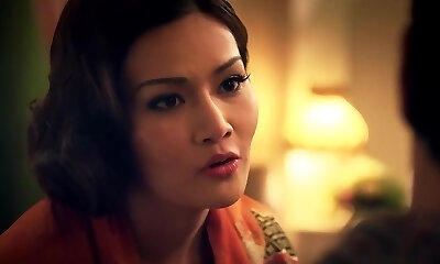 gran jefe en esposa asiática reservada de grandes tetas folla para asegurar la promoción de maridos