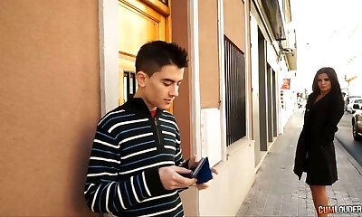 Sassy dark haired woman brings home this boy and bj's his dick