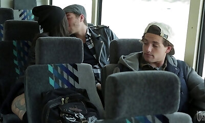 Couple fucks hard on a bus filled with nosey viewers