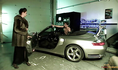 丰满的黑发小妞支付了一个汽车修理与她的孔