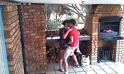 Spycam:CC电视自给自足的住宿夫妇在自然保护区前廊撕毁