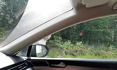 老性感的搭便车妓女从街头性交在森林里,然后没有避孕套