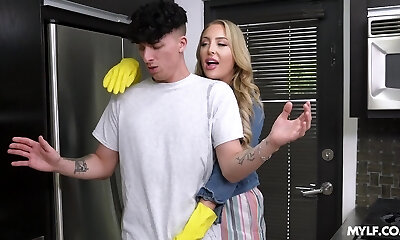 essayant de paraître plus adolescent, stepnana demande à son beau-fils, pour la procédure spéciale de masque facial de sperme