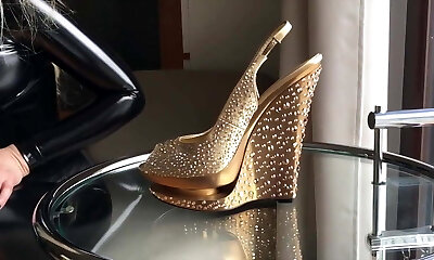 Naked Busty Blonde Penny Lee Wants Spunk On Her Cool Gold Designer Heels
